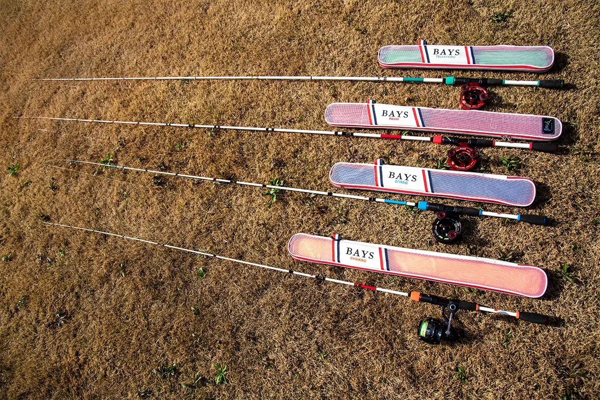 BAYSシリーズはそれぞれのタイプに長短2種類のレングスを用意。上から、ヘチ並振GREEN(245と275)、ヘチRED(225ち255)、ヘチスピニングBLUE(215と235)、チニングORANGE(68ち74)
