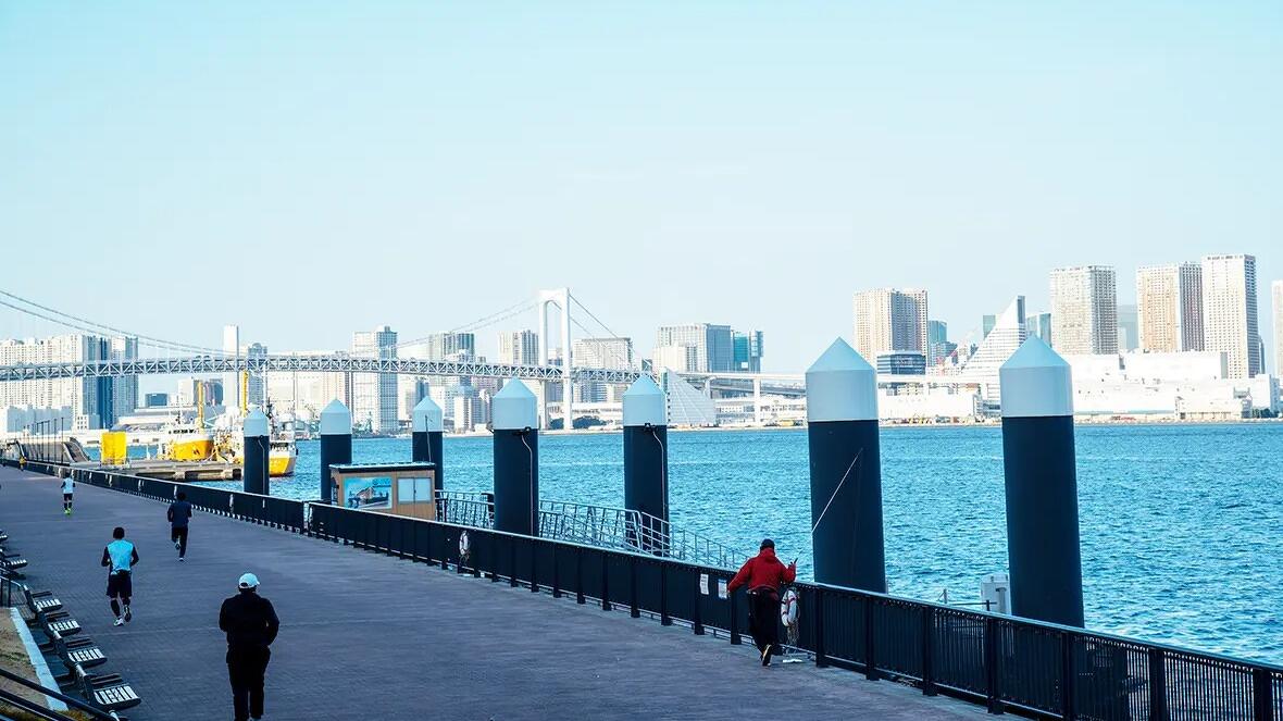 豊洲ぐるり公園は、釣り人も多いがジョギングファンも多い。かつては近藤さんも走る側だった