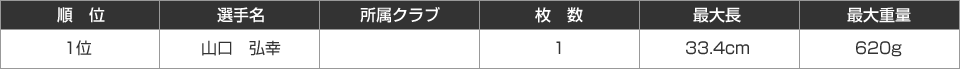 結果として、競技時間内に釣れた黒鯛は1尾。やや深めのタナで粘って釣ったという山口弘幸選手が唯一の釣果を手にすることとなりました。