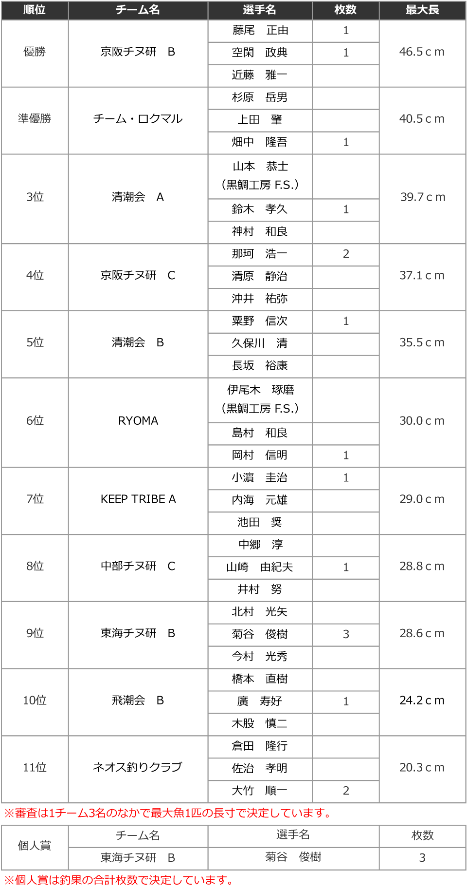 4位:京阪チヌ釣り研究会 Cチーム