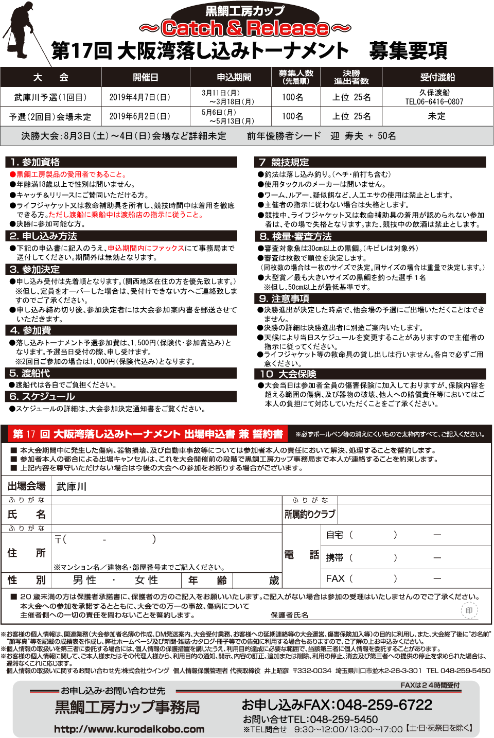 第17回 大阪湾落し込みトーナメント 予選1回目 募集要項