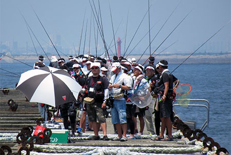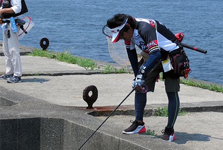 1日目の南港新波止では、競技スタートのサイレン直後から竿が曲がる展開に。競技時間を通して、中間部から赤灯寄りでの釣果が多かったようです。