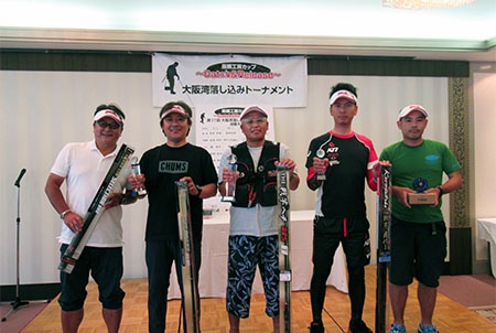 さて、競技終了後ホテルに会場を移して行われた表彰式・懇親会では、選手へのインタビューや黒鯛工房商品の黒鯛稚魚放流募金オークションなども大盛況。選手同士の交流はもちろん、この決勝大会の表彰式・懇親会でしか味わえない黒鯛師同士の和気あいあいとした時間を過ごしながら、17回目となる大阪湾落し込みトーナメントは無事に閉幕することが出来ました。