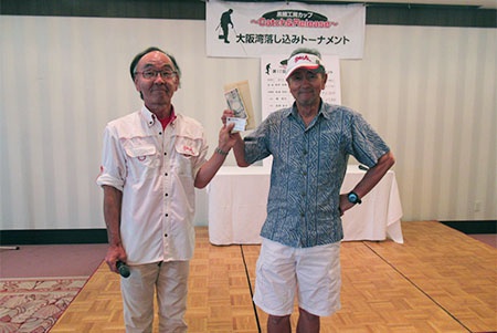 なお、今回の表彰式・懇親会では稚魚放流資金として、入賞選手をはじめ多くの選手から募金にご協力いただきました。募金総額47,246円は神戸港稚魚放流基金の実行委員長の長田伸一郎氏へ全額手渡しし、大阪湾の稚魚放流事業へ役立てていただきます。たくさんのご協力、誠にありがとうございました。