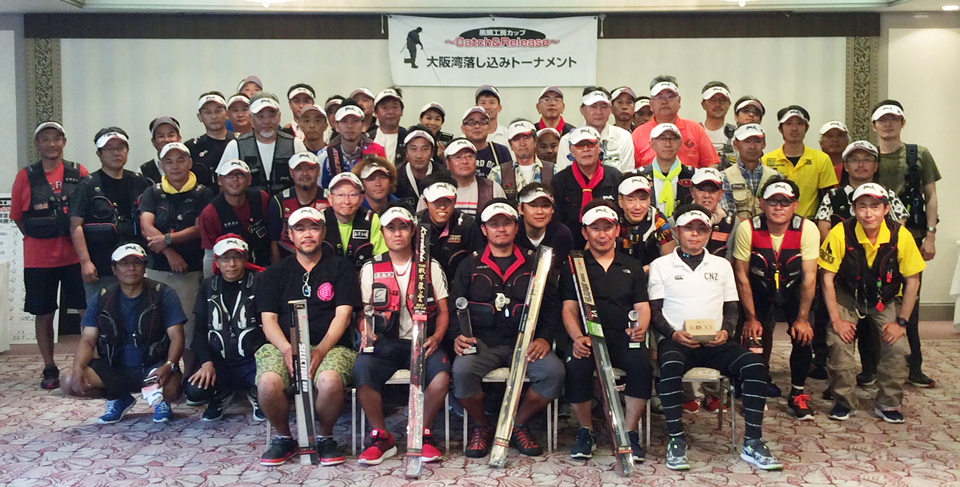 さて、競技終了後ホテルに会場を移して行われた表彰式・懇親会では、選手へのインタビューや黒鯛工房商品の黒鯛稚魚放流募金オークションなど大変な盛り上がりをみせ、選手同志の交流はもちろん、決勝の表彰式・懇親会でしか味わえない心地よい時間を過ごしながら15回目となる大阪湾トーナメントは無事に幕を閉じることができました。