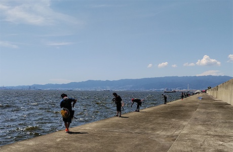 1日目の尼崎フェニックスは、競技のスタートのサイレン直後からスリット面を中心に竿が曲がる展開に。競技時間を通して、時合いらしい時間帯は少なく、午後から強さを増した風による波浪に翻弄されながらも、仕掛けをコントロールしてチヌのいるポイントまでしっかりと餌を届けられるかが釣果のキーに。