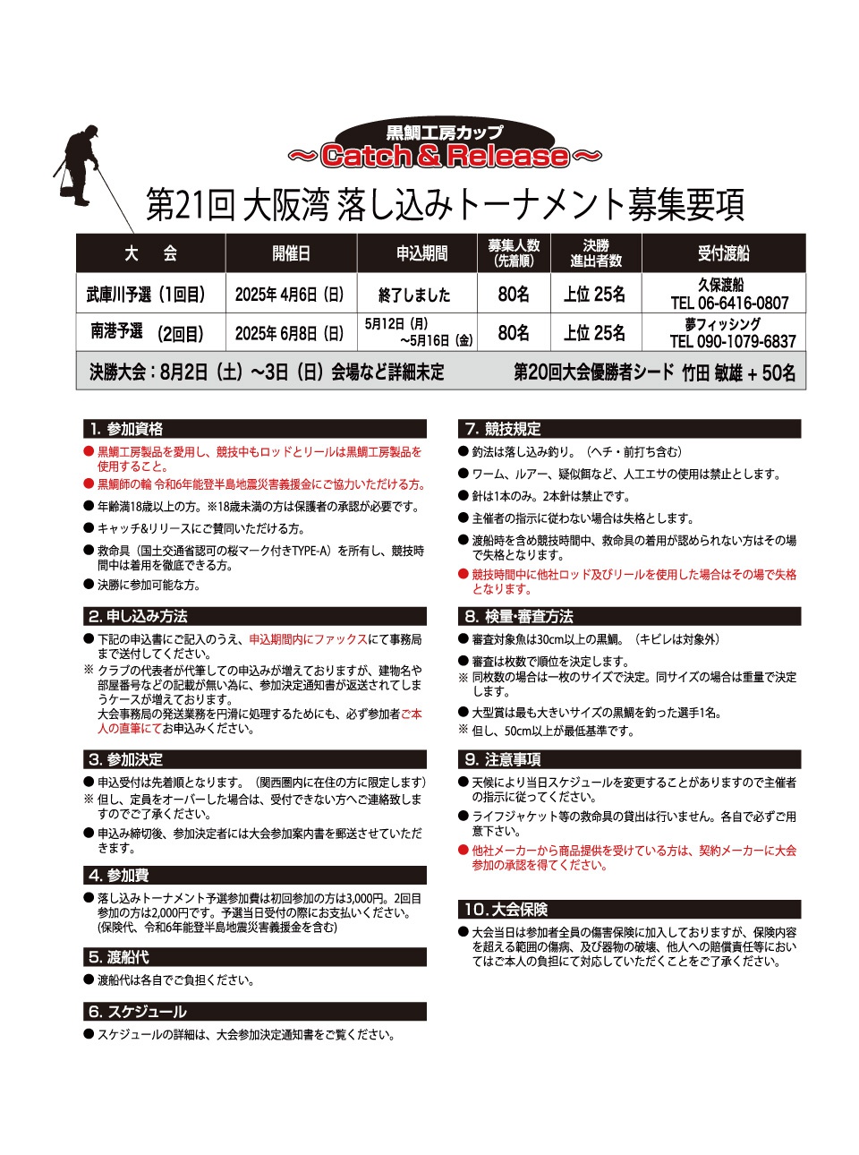 ●本予選は、第21回大阪湾落し込みトーナメント決勝(2025年8月2日(土)~3日(日)開催予定)への出場権をかけた予選となります。