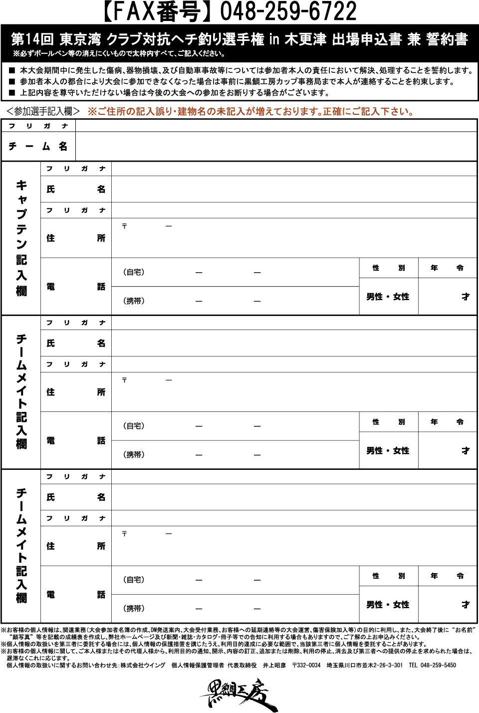 下記の申込書(PDF)をダウンロードし、プリントして必要事項記入の上、申込期間内にFAXにて事務局まで送付して下さい。 申し込み期間外にFAXをお送りいただいても参加無効となりますのでご注意ください。