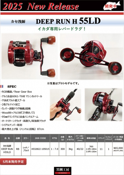 【新製品店頭受注のお知らせ】 2025年3月末頃より、「カセ筏師 DEEP RUN H55LD-RB」の店頭受注を開始する予定です。 (BGカラーは生産予定未定です)